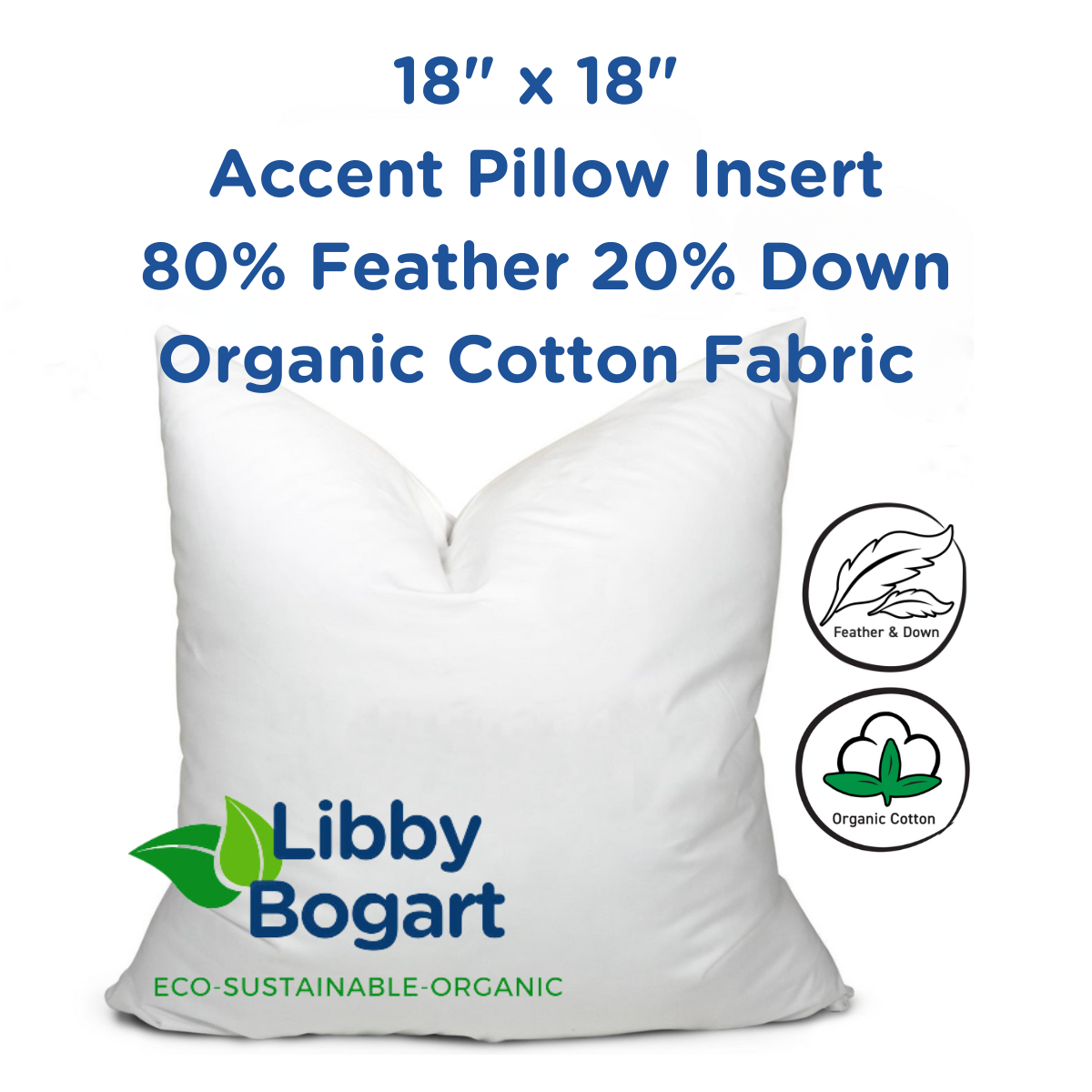 18" x 18" 80% Feather 20% Down Organic Cotton Fabric Accent Pillow Insert
