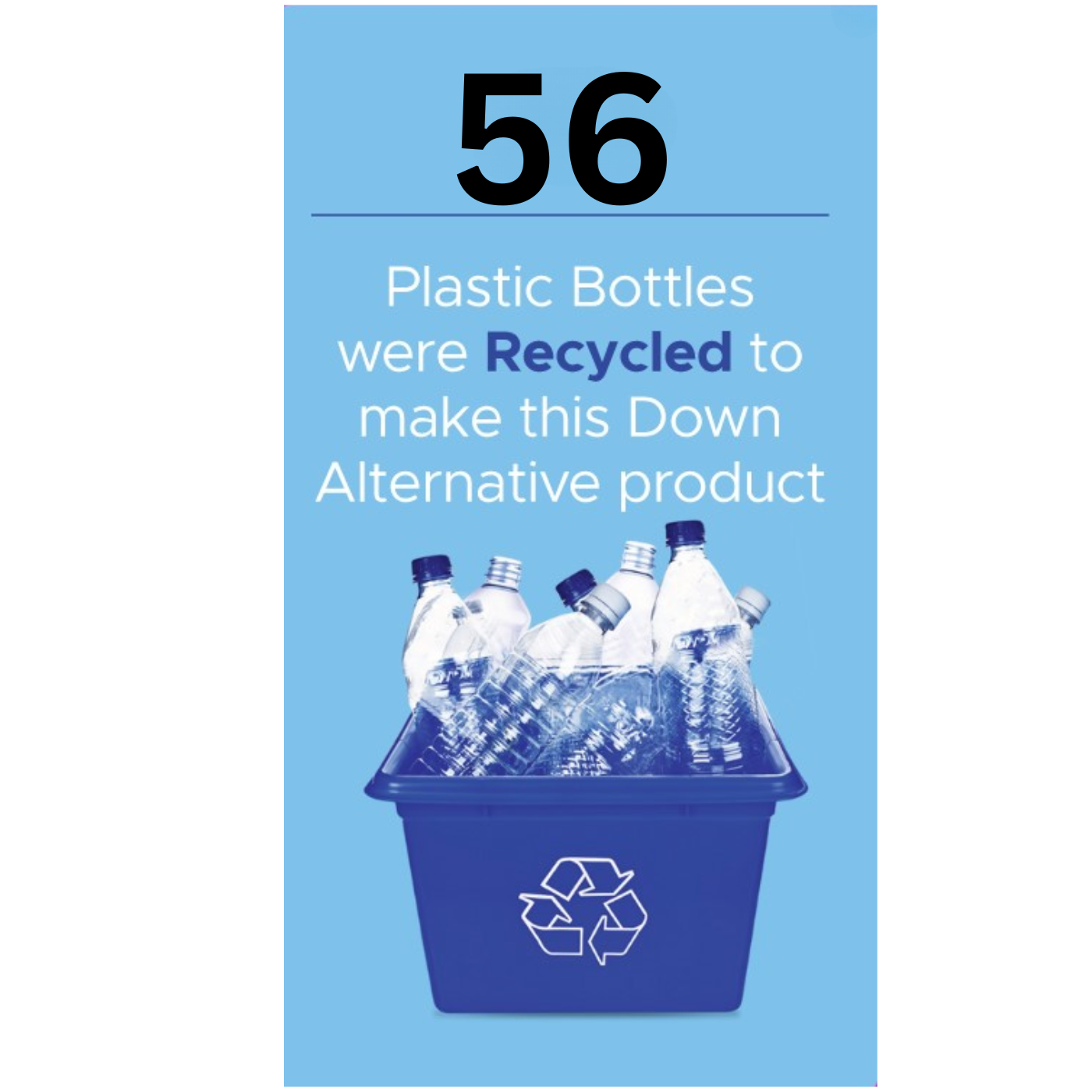 56 Water Bottles were Recycled to make this Down Alternative Double Pillow (based on standard size 17 oz/500 ml water bottle)