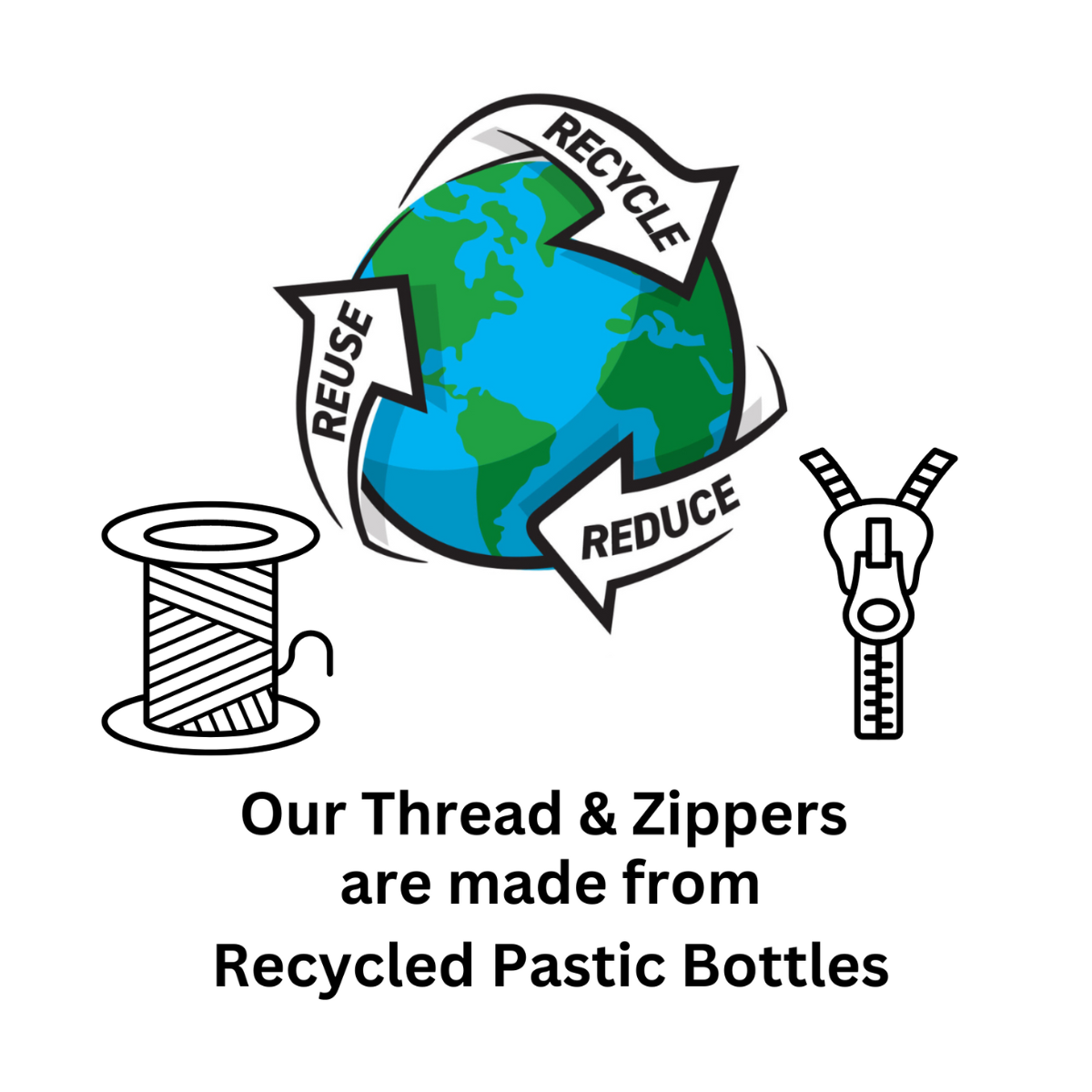 Sewn with a Zipper & Thread from Recycled Plastic Bottles