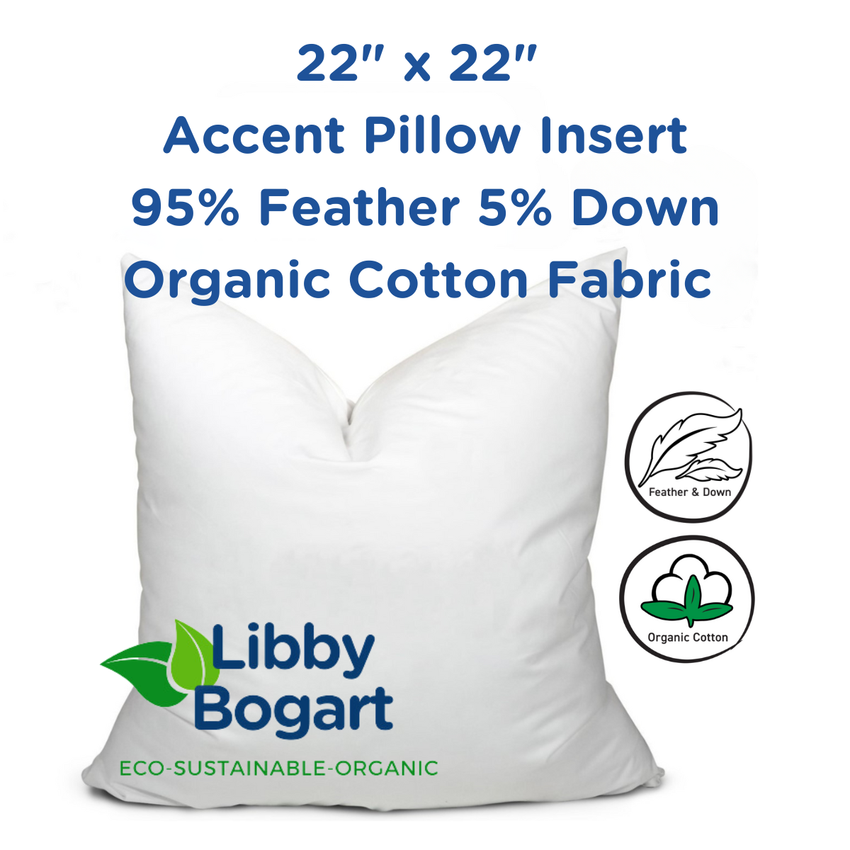 22" x 22" 95% Feather 5% Down Organic Cotton Fabric Accent Pillow Insert