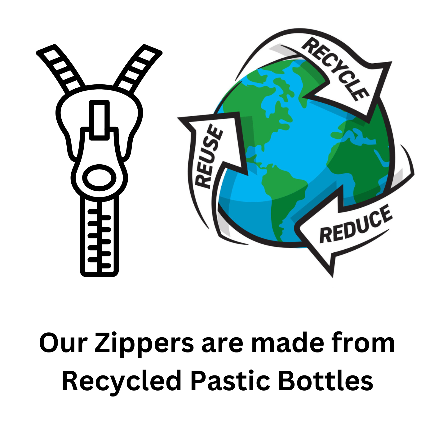 Sewn with Organic Cotton thread and Zipper from Recycled Plastic Bottles