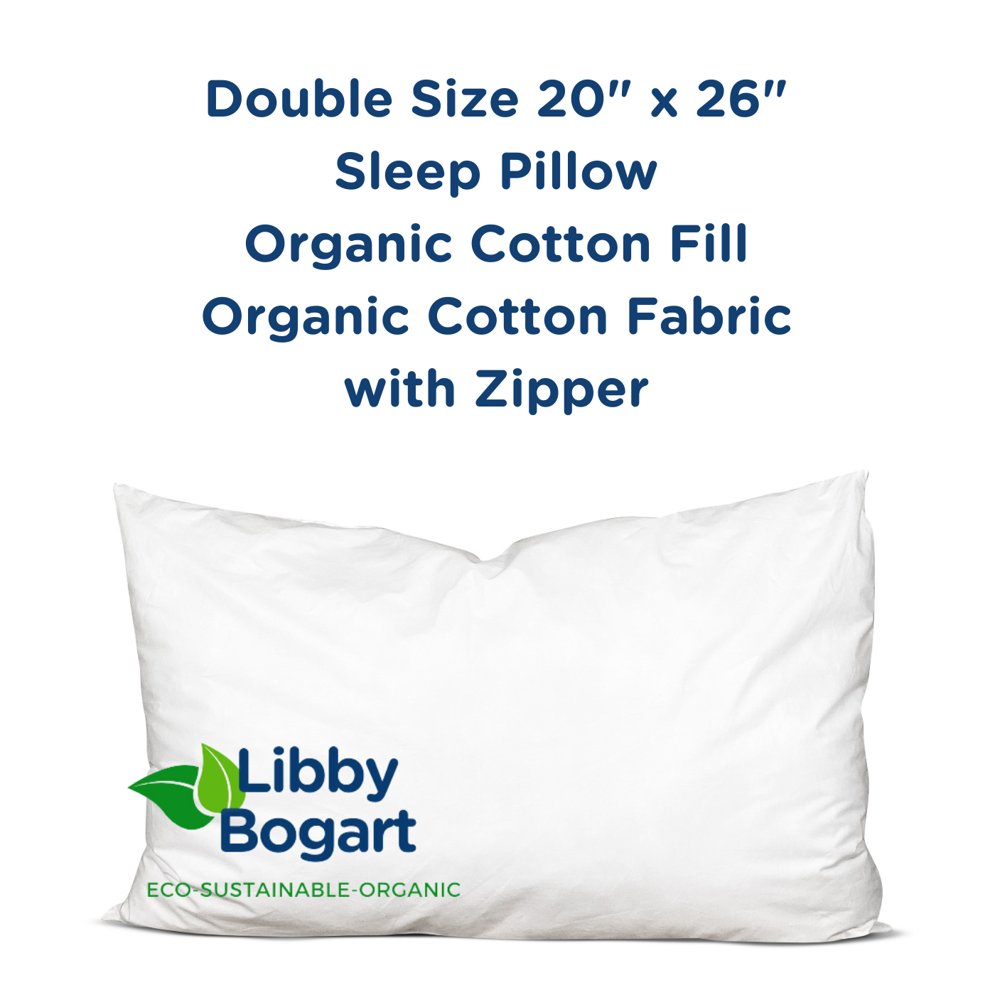 Double Size 20" x 26" Organic Cotton Sleep Pillow Organic Fabric with Zipper
