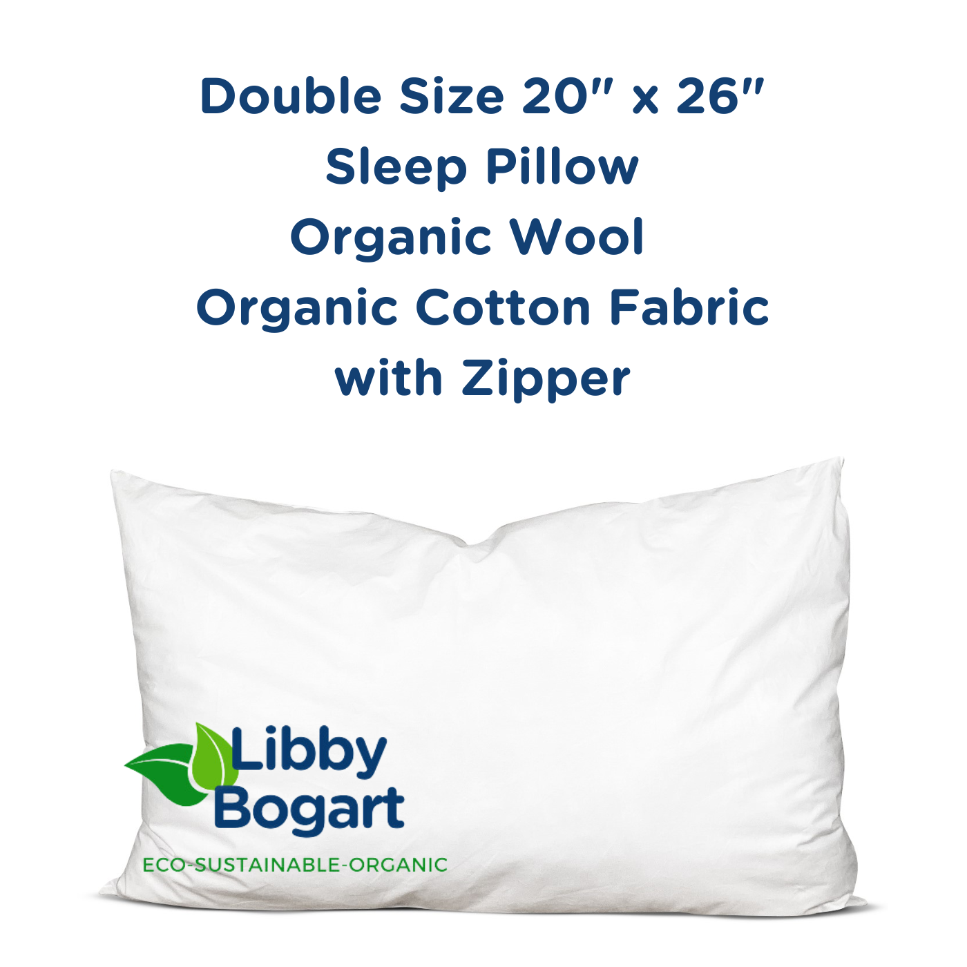 Double Size 20" x 26" Organic Wool Sleep Pillow Organic Fabric with Zipper