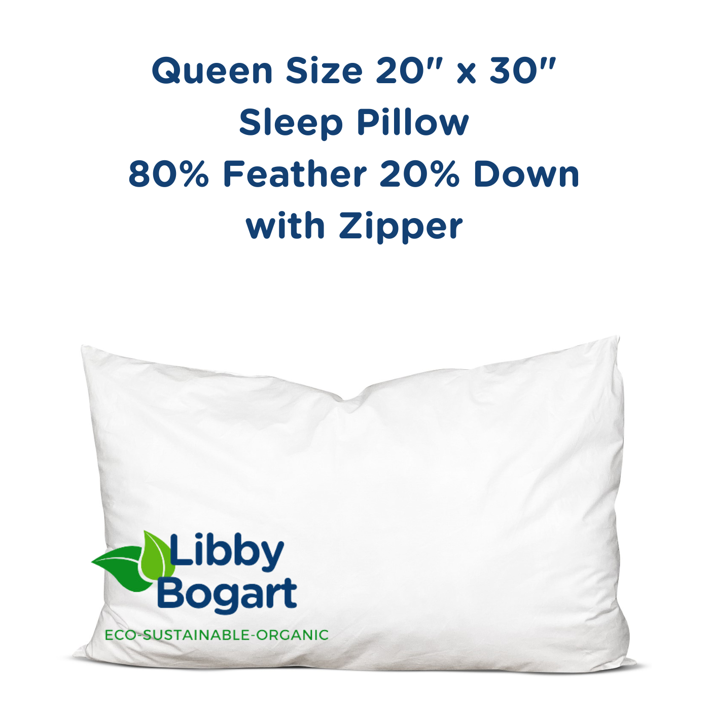 Queen Size 20" x 30" Sleep Pillow 80% Feather 20% Down with Zipper